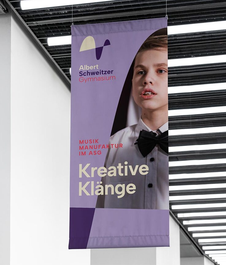 Das Albert Schweitzer Gymnasium in Hamburg verbindet zwei Welten: Musik und Naturwissenschaften. Deren Dynamik spiegelt sich in der Form eines Graphen mit Höhen, Tiefen und Schwingungen wider. Daraus haben wir die Initialen des Namensgebers abgeleitet und ein prägnantes Logo und Designsystem geschaffen, welches die besondere Identität der Schule sichtbar macht und lebendig nach außen trägt.