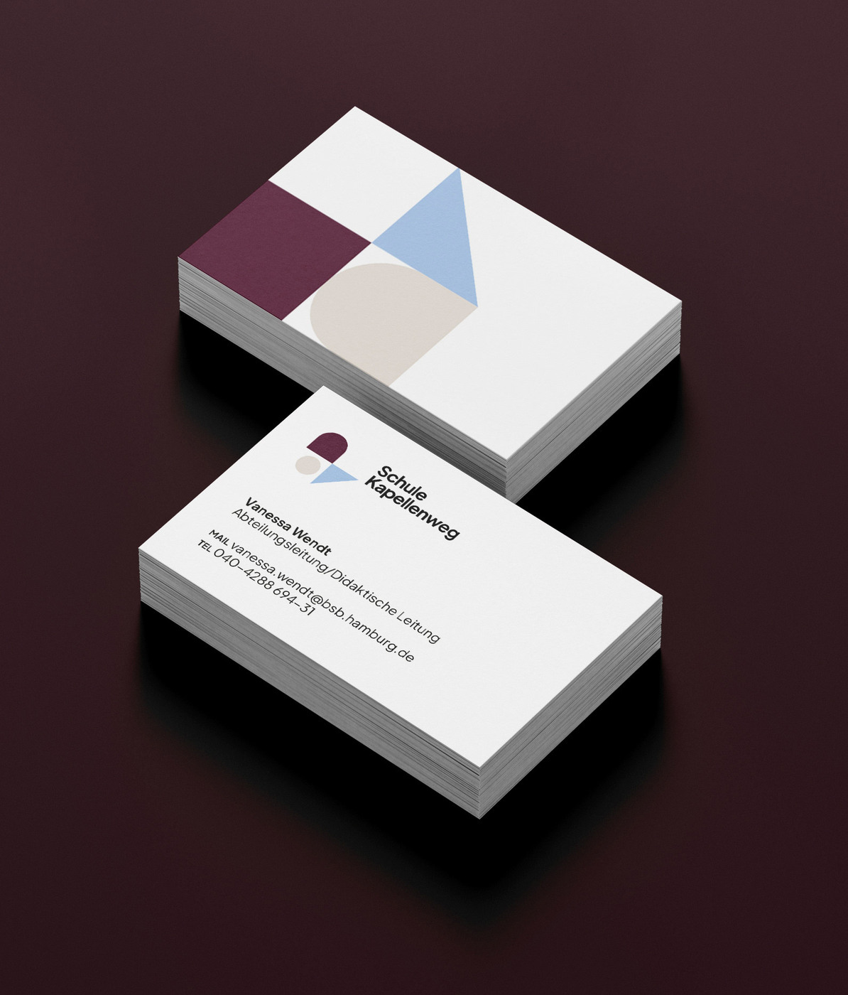 Die Schule Kapellenweg setzt auf einen integrativen Ansatz und schafft eine vielfältige Umgebung, die von Akzeptanz, Toleranz und Wertschätzung geprägt ist. Diese Vielfalt wird in dem neuen Design durch unterschiedliche geometrische Formen sichtbar, die zugleich die markante Form des Kapellendachs aufnehmen und visualisieren.